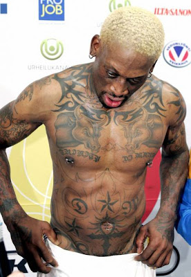 Checkout these pictures of Dennis Rodman and his many tattoos.