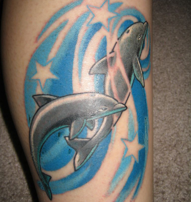 Try giving your dolphin tattoo a unique style by choosing a cartoon like design or perhaps a tribal, aztec or other form of ancient artwork.
